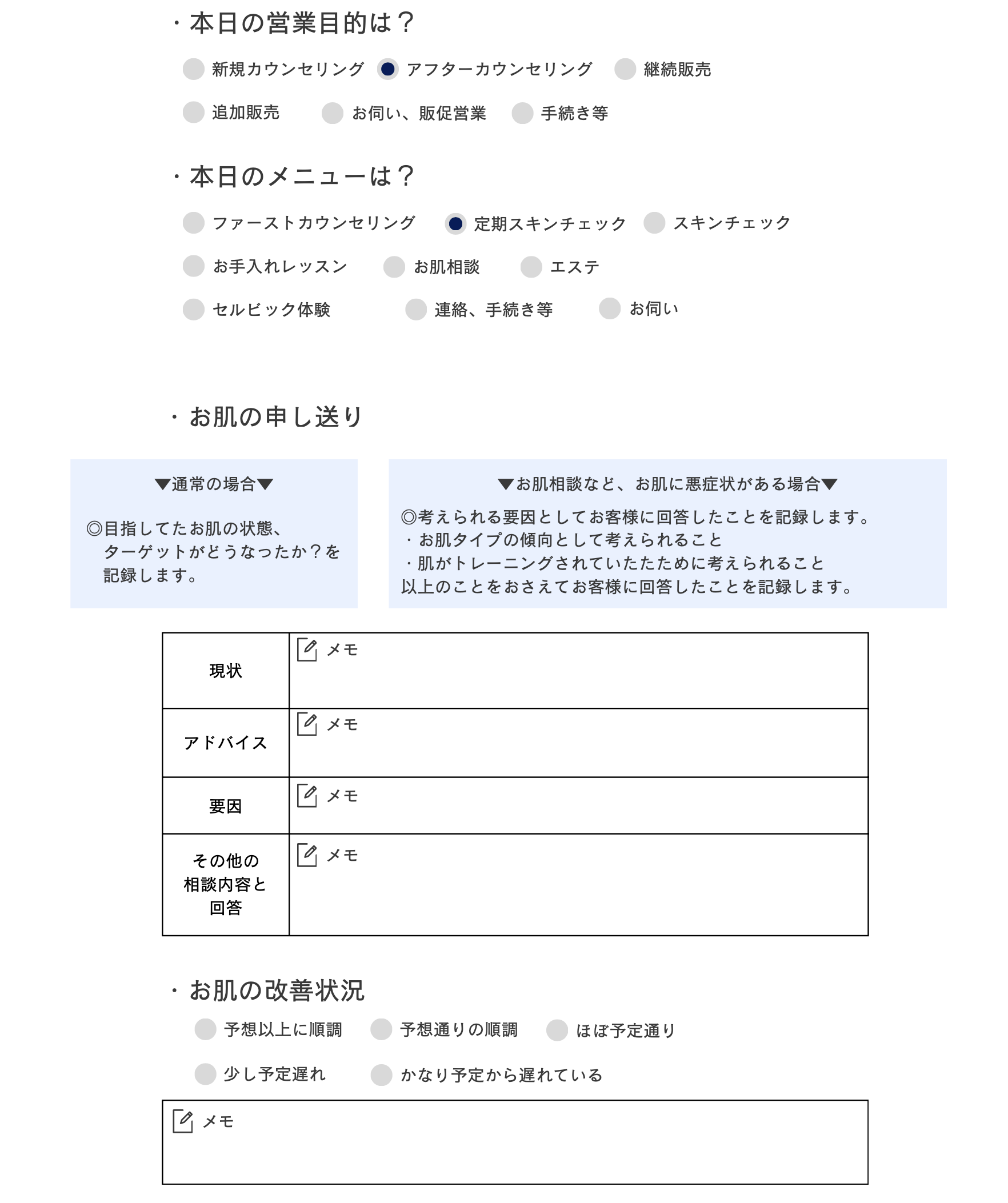 本日からイオン導入を頑張ってみる!という ことなので、+120秒でアドバイスしていま す。次回は、9月お誕生日エステでお取りし ていますので、その時にお手入れ順調でした らマイナスのアドバイスをしてください。お 仕事は、ヤマを越えたがまた9月くらいから 忙しくなってきそうとということでした。ま た、少し前に眉毛のカットに行き整えてもら